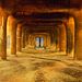 Under the Manhattan Beach pierThe columns holding up the Manhattan Beach pier, lit by sodium vapor lights.